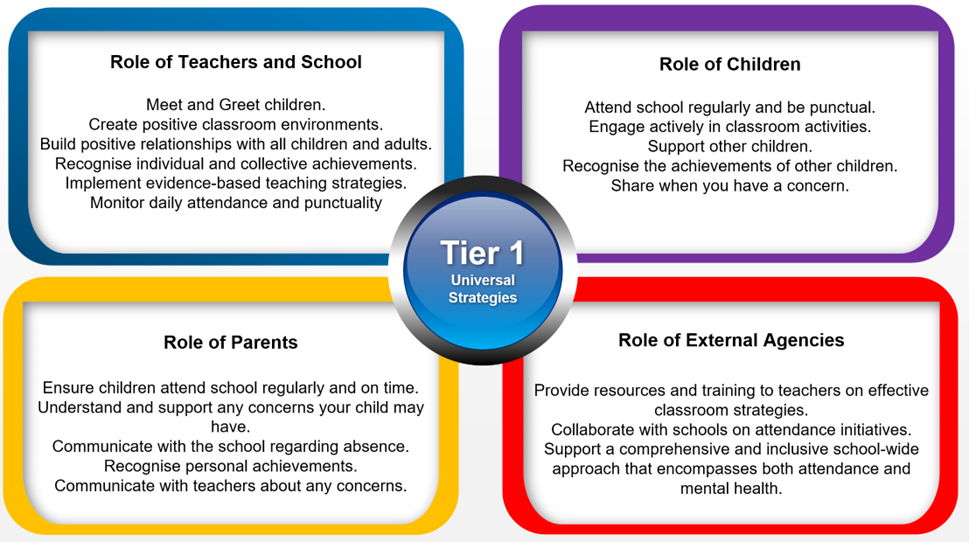 Tier 1 – Universal Approach: Establishing a baseline universal attendance approach that benefits all children.
