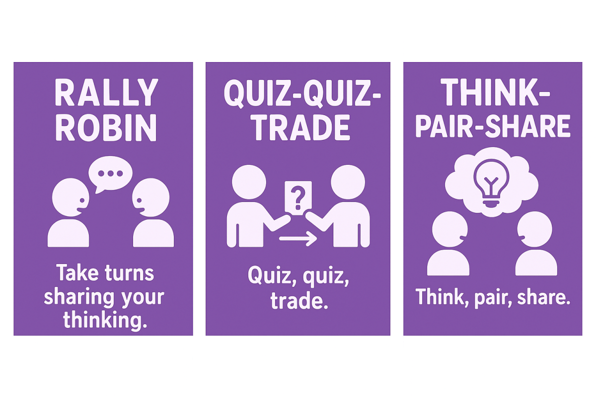 - Think-Pair-Share – children think individually, discuss with a partner, then share with the class.